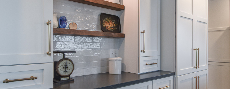 Designer's favorite element: Josh loves the antique-modern style of the completed design, as it’s very close to his personal design style! His favorite part of the final project is the counter to ceiling backsplash featuring pillowed subway tile. The tile has a really nice clean look, as you can see below, with just enough movement and sheen for a touch of personality.